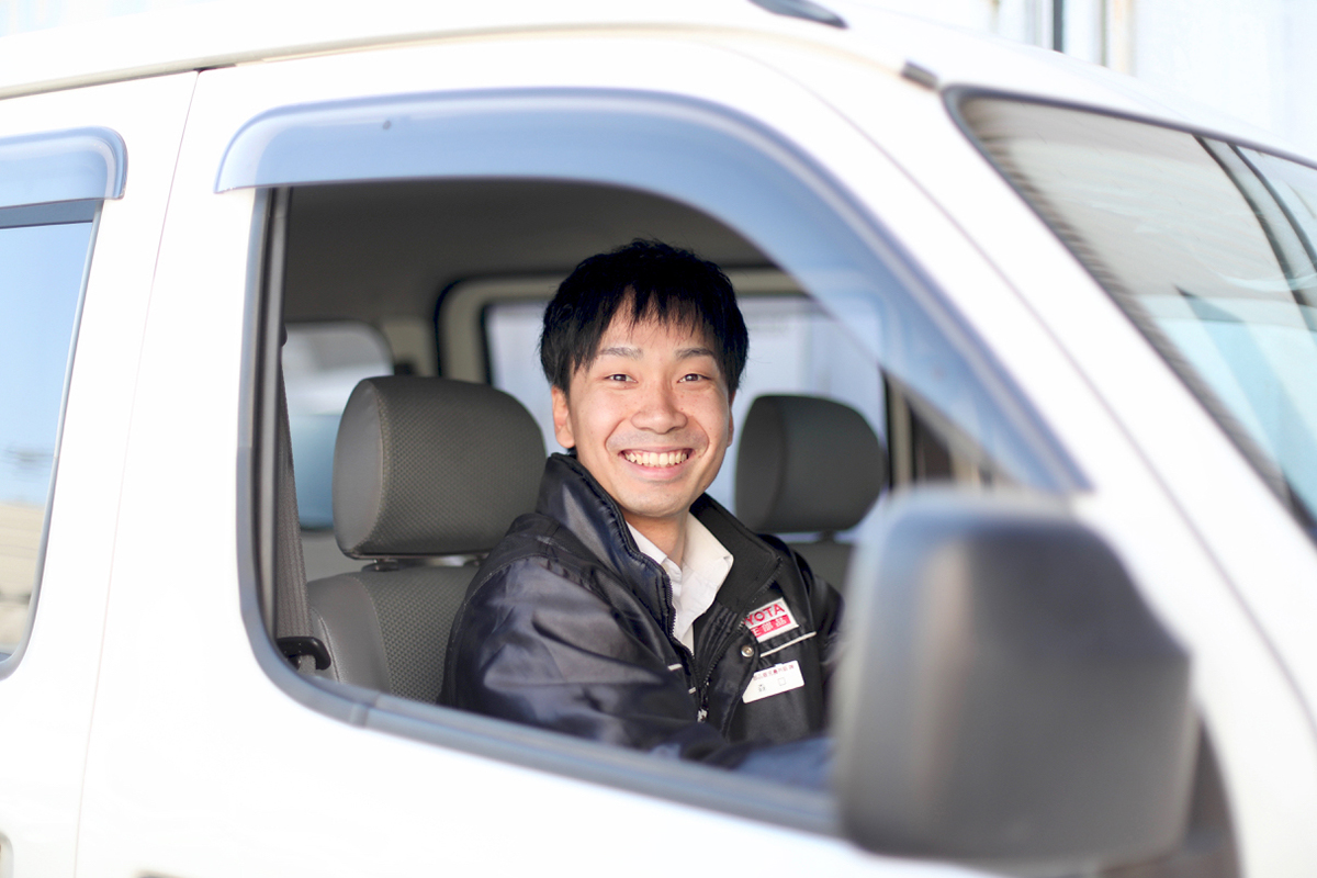 営業スタッフとして県内の修理工場様や鈑金工場様、ガソリンスタンド様などのニーズに合った商品の提案、自動車部品の受注、在庫品の管理を行っています。車のユーザー様がどのようにしたら当社の商品を使っていただけるか、工場のみなさんが作業しやすくなるか、喜んでいただけるかを常に考えながら業務を行っています。