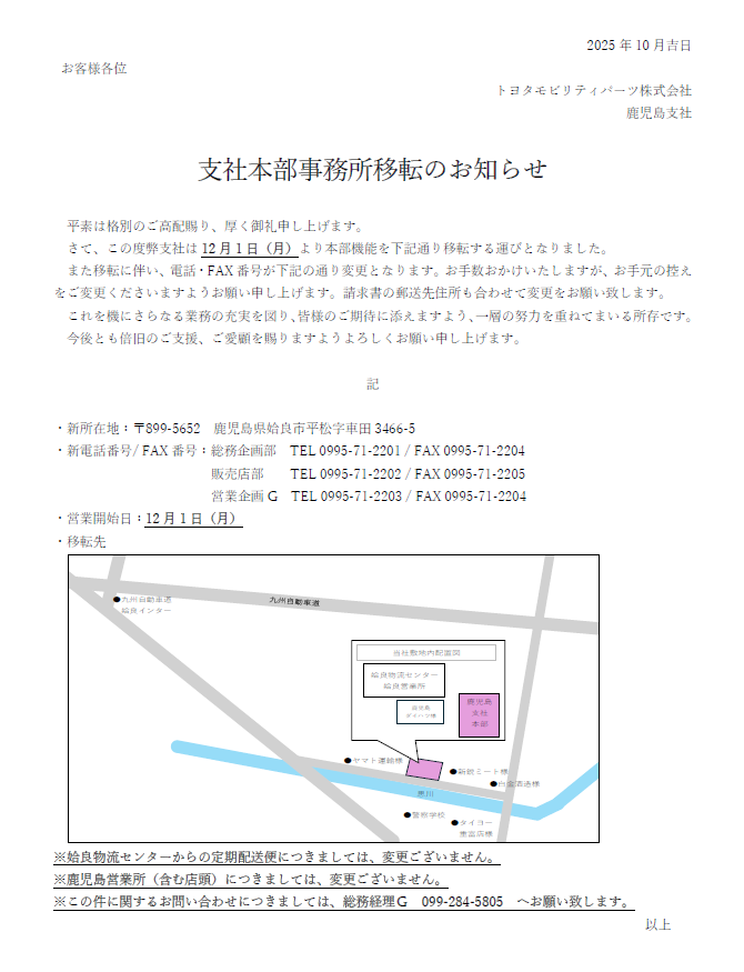 トヨタモビリティパーツ株式会社 鹿児島支社